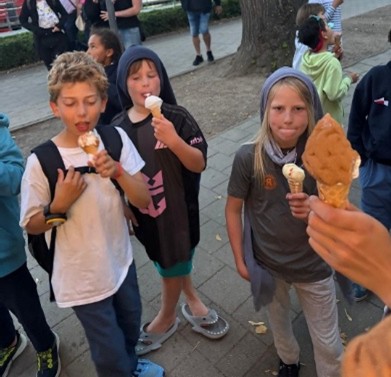 Schon früh am Morgen machten wir uns auf den Weg nach Warnemünde. Nach dem Abladen und Aufbauen der Boote nutzten die ILCA 6-Segler sofort die erste Chance zum Segeln. Die ILCA 4-Gruppe verbrachte noch etwas Zeit an Land und gönnte sich mit Bruno ein Eis.