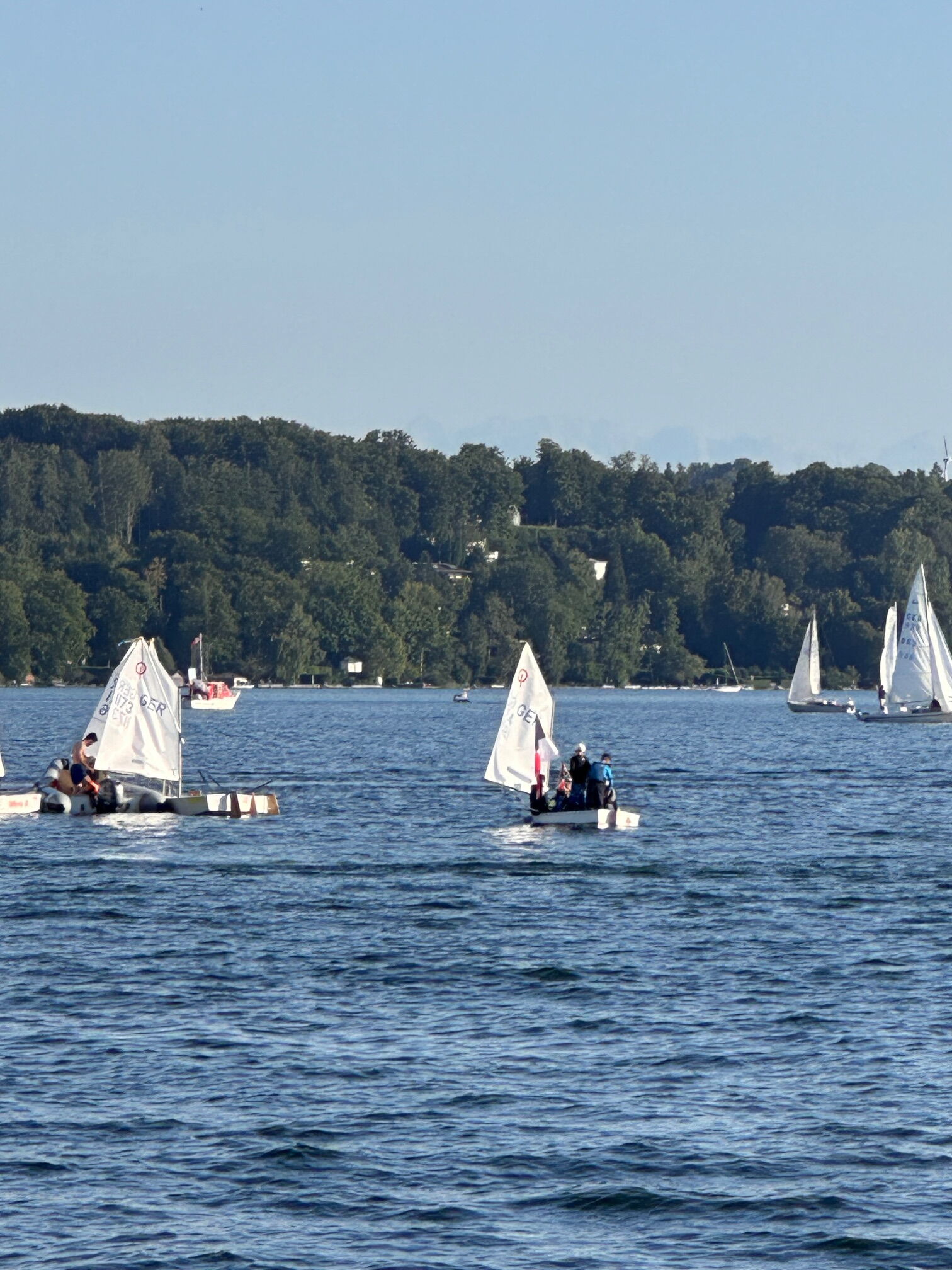 Ein großer Dank geht an den Bayerischen Yacht Club für die phantastische Organisation der Woche: nicht nur auf dem Wasser, sondern auch an Land wo es neben Abendessen und Lunchtüten auch immer wieder frisches Obst oder süße Teilchen für alle gab, die Eltern mit dem Zuschauerboot Petunia bei Rosé den See genießen und zugucken konnten, mehr als genug Platz für alle Optis und insgesamt überträgt sich die freundlich, gediegen-entspannte Atmosphäre sofort auf alle. Wir kommen wieder!