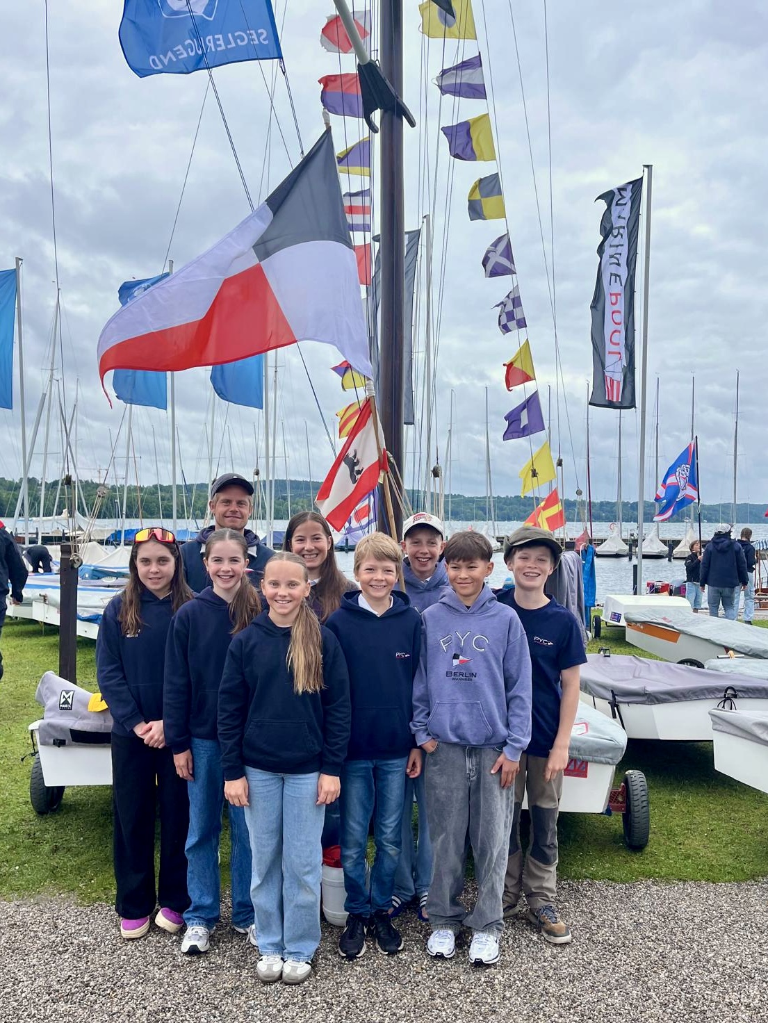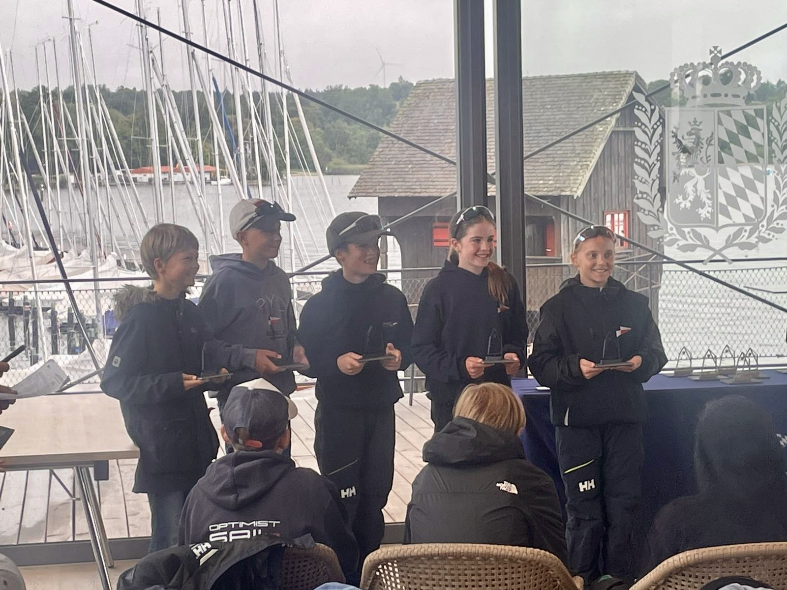 Die Siegerehrung wurde eingeläutet von einem Kunstflieger, der für uns das Opti-Zeichen in den Himmel malte. Dann ging es nach den Dankesworten des Vorstandes zu den Platzierungen. Der erste Preis ging für das beste Bundesland an: BERLIN! Also auch an uns – den PYC!