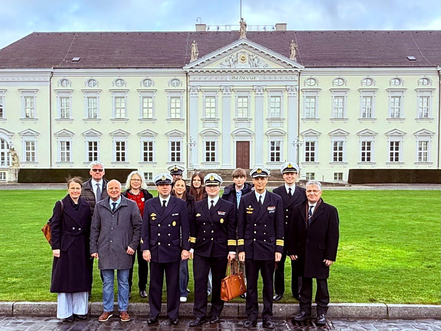 Nach einem gemütlichen gemeinsamen Frühstück im Jugendhaus ging es am Morgen des 29. Januar zum Schloss Bellevue, wo wir von einem Unteroffizier der Marine empfangen wurden. Er berichtete en détail, wie auf dem Vorplatz Staatsoberhäupter und andere Gäste minutiös getaktet empfangen werden. Im Schloss wurden wir durch alle Räumlichkeiten geführt, bestaunten die stets wechselnde ausgestellte Kunst und wurden auch hier in jedem Raum ausführlich über dessen Verwendung aufgeklärt.