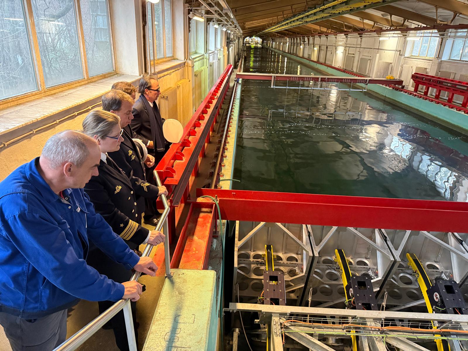 Apropos „fotogen“: An einer Wand über dem Seegangsbecken entdeckten wir ein antiquiert wirkendes Schiffsmodell mit einer tragflächenartigen Konstruktion am Rumpf. Foils? „Ja, klar“, erläuterte der kenntnisreiche Techniker, der uns durch die Anlagen führte. „Foiling ist doch ein alter Hut.“ – Wir haben viel gelernt an diesem Nachmittag.