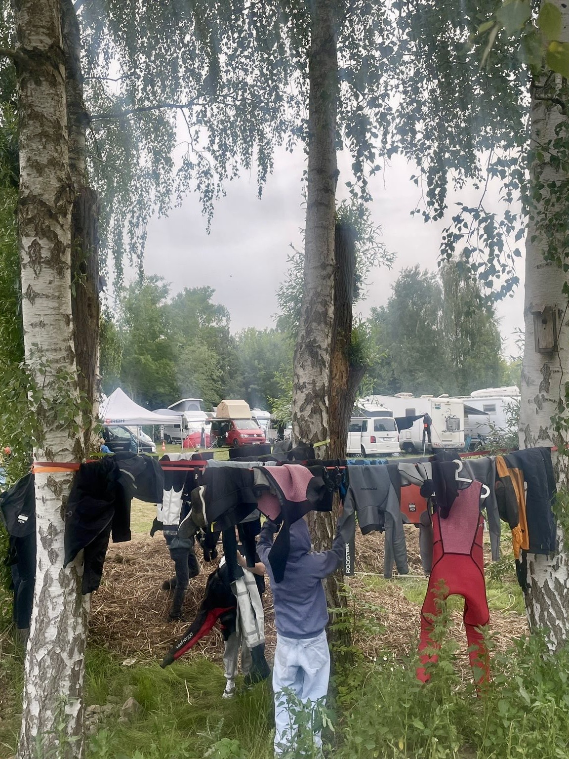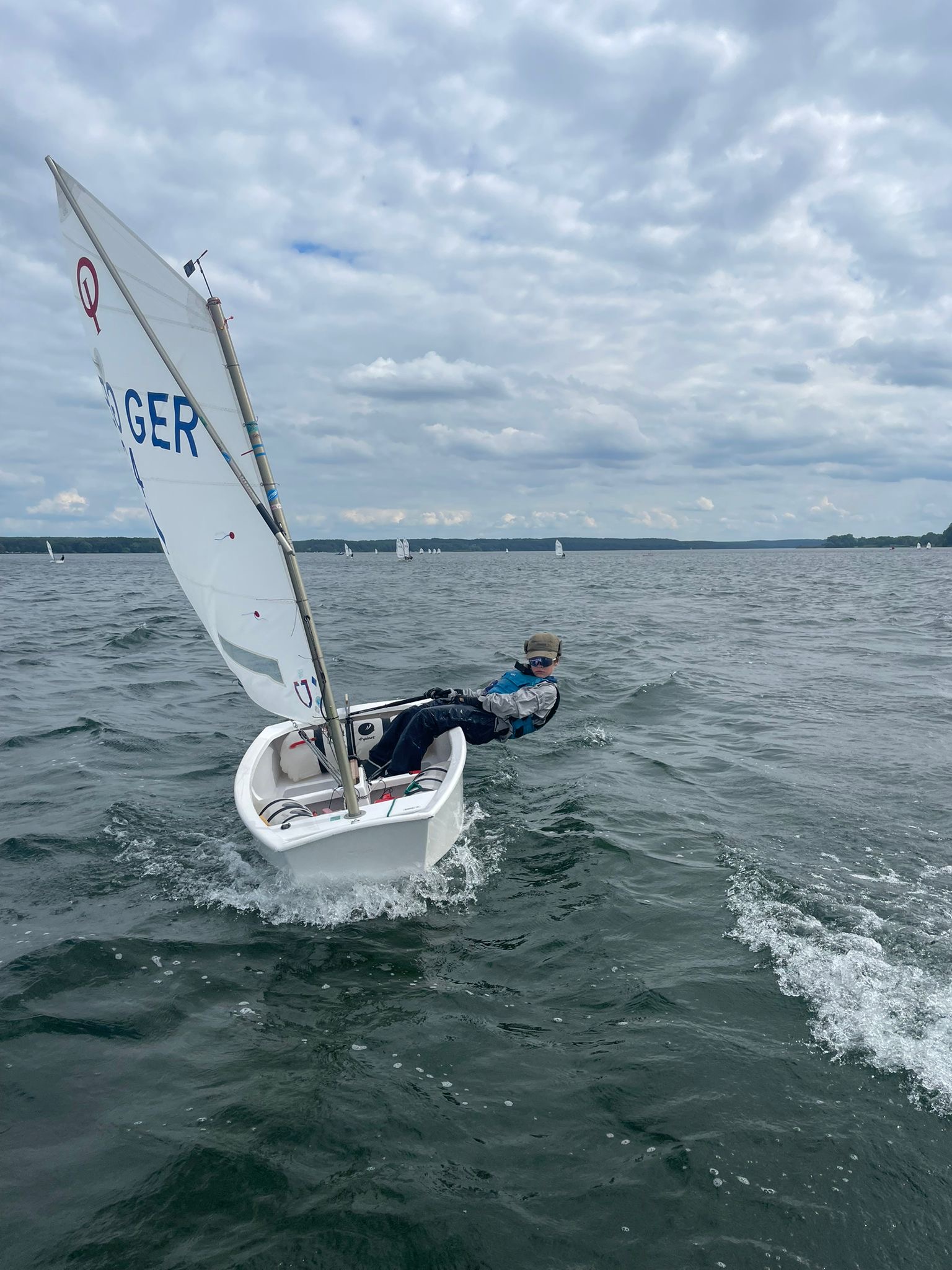 Am Sonntag war ein strammes Programm: 9:30 Uhr erster Start und dann vier Wettfahrten. Vorher mussten wir auch noch die Zelte ausräumen (die unsere Eltern dann netterweise abgebaut haben während wir auf dem Wasser waren).