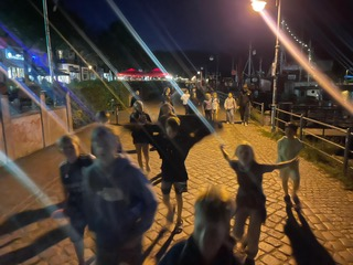 Neben dem Segeln waren es auch die gemeinsamen Erlebnisse an Land, die die Woche besonders machten: das Grillen, das Schnitzelessen, das Bowlen und der Blick vom Riesenrad über Warnemünde im Sonnenuntergang. Und immer wieder spürten wir, wie gut unsere Gruppe zusammenwächst und wie schön es ist, neue Segler in der Gemeinschaft willkommen zu heißen.